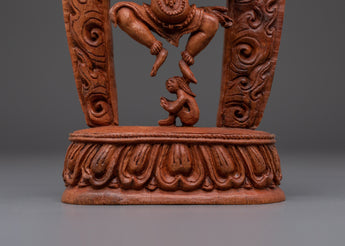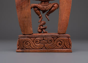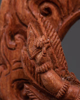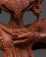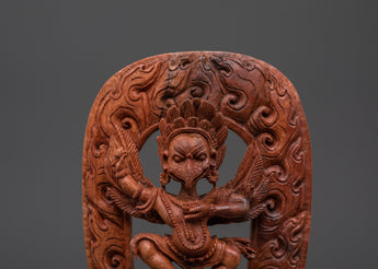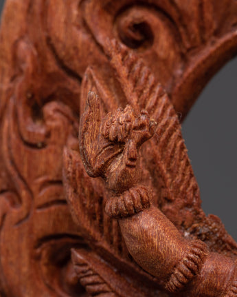 The statue's exquisitely detailed wooden construction, which embodies Garuda's strength and grace, is a tribute to traditional artistry. Often regarded as the mount of Lord Vishnu and a formidable figure in both Hindu and Buddhist mythology, the remarkable features of Garuda's face, wings, and posture represent its symbolic position as a fierce guardian. The statue is a perfect complement to any home décor or spiritual altar because of its natural wood finish, which gives it an earthy, grounded presence. A potent spiritual representation of defense and heavenly might is the Majestic Protector Garuda Statue. It will infuse your surroundings with the blessings of courage and protection, making it ideal for meditation areas, home altars, or as a component of a spiritual collection.