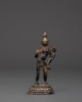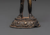 Tara figurine is crafted from copper with an exquisite antique finish, with its graceful details. Symbolizing spiritual growth and protection, this statue serves as a powerful reminder of compassion, healing, and inner strength.