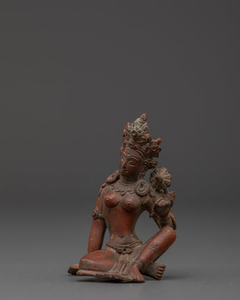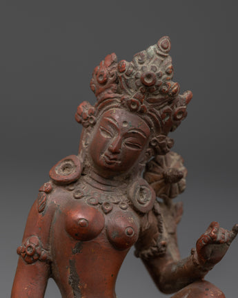 Compassionate Protector Green Tara | Tibetan Buddhist Oxidized Copper Statue