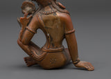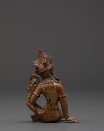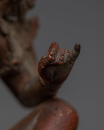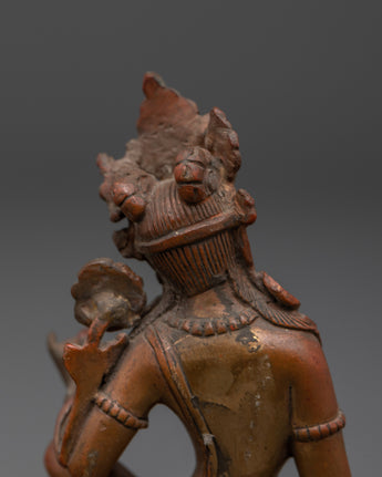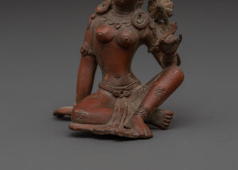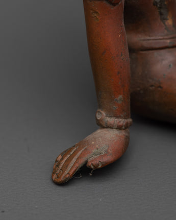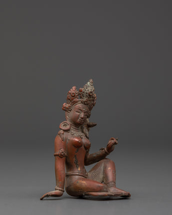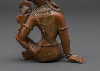 This Green Tara copper statue exemplifies exquisite craftsmanship, bringing to life every detail—from the delicate lotus seat and flowing ornaments to her compassionate and serene gaze—through time-honored traditional techniques. In Tibetan Buddhist practice, Green Tara is revered as the swift savior who shields devotees from obstacles, fears, and challenges, guiding them compassionately toward wisdom and spiritual enlightenment. The oxidized copper finish not only accentuates the intricate artistry but also imparts a distinctive and sacred aura, making this statue a captivating centerpiece that enhances any meditation space, shrine, or spiritual environment. Embrace the protective energy and profound grace of Green Tara with this powerful and inspiring sculpture.