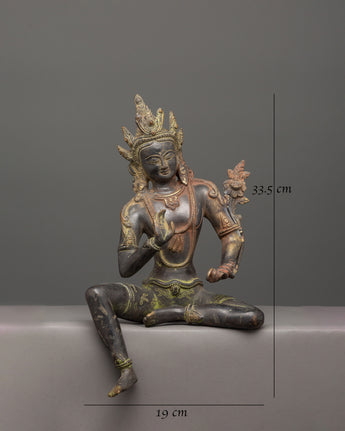 Handcrafted Brass Goddess Green Tara Statue with Antique Finish