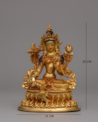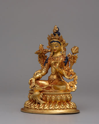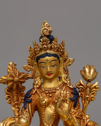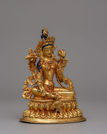 Gold-Plated Green Tara Statue - Meditation & Spiritual Home Decor
