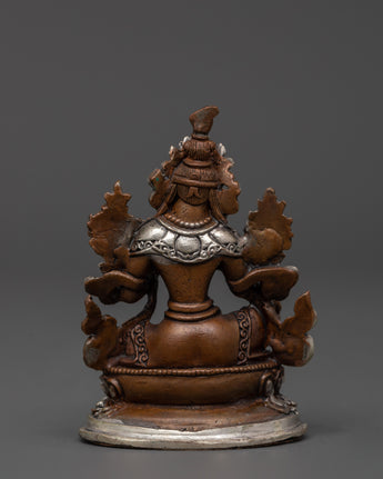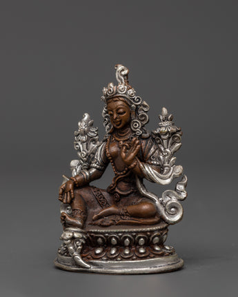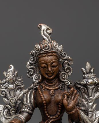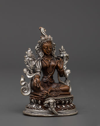 Green Tara Buddhist Goddess of Compassion | Oxidized Copper & Silver Plated Statue