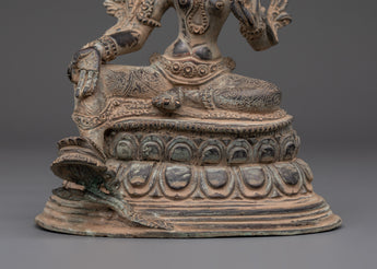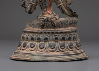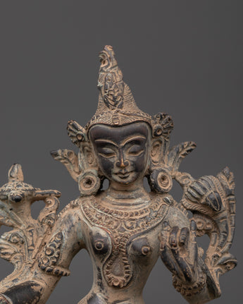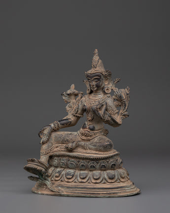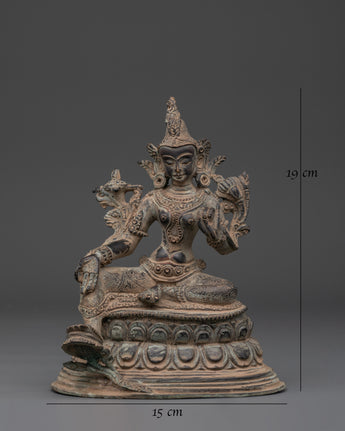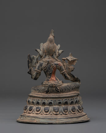 Handcrafted Copper Green Tara Buddhist Goddess Statue | Tibetan Tara Spiritual Altar Decor
