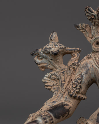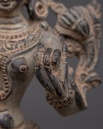 Green Tara, renowned as the swift liberator and mother of all Buddhas, is seen here in a poised pose of elegance and readiness, representing her duty as a defender and guide. The intricate engravings on her robes, flower embellishments, and lotus base highlight the artistry that brings her to life in this statue.