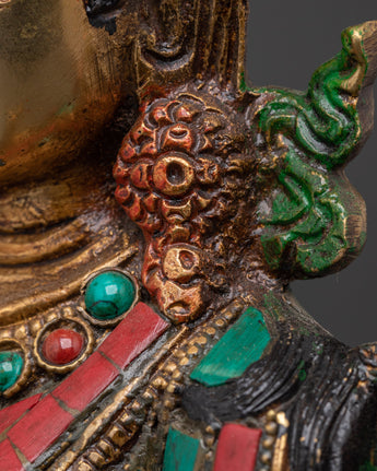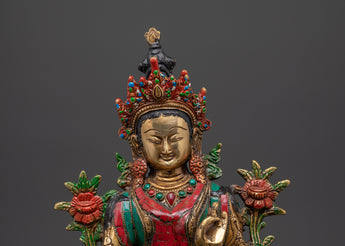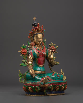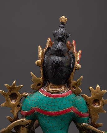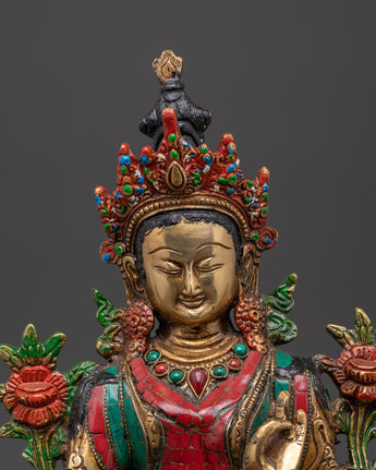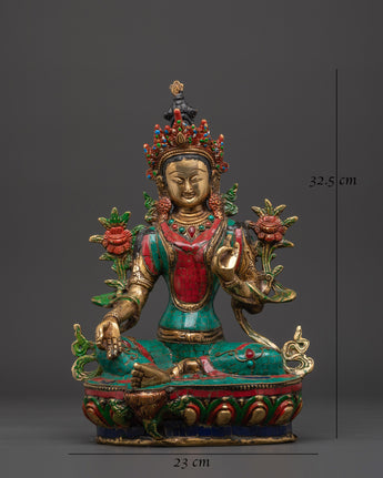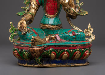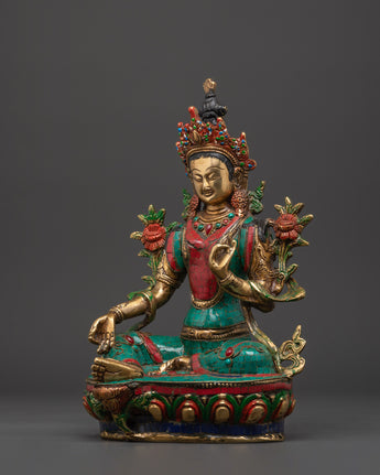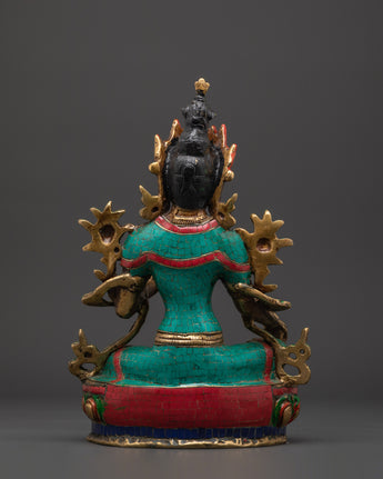 Green Tara Compassionate Protector Statue | Coral & Turquoise Inlaid Statue