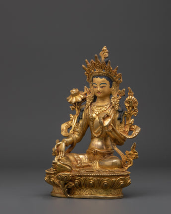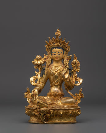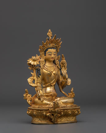 Green Tara Gold Plated Statue | Statue Healing and Blessings