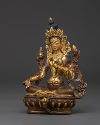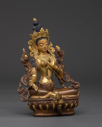 Green Tara Statue for Peace | Handcrafted Copper and Gold Plated Buddha Statue