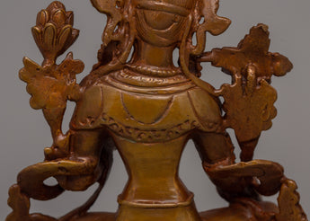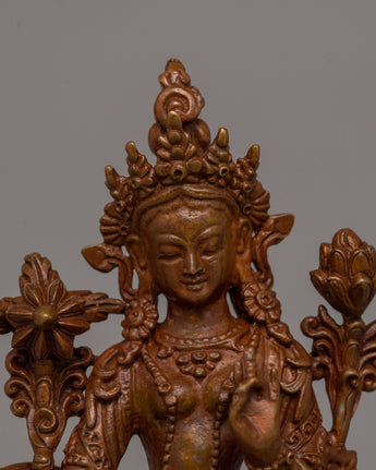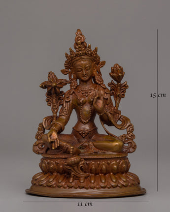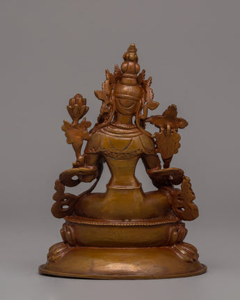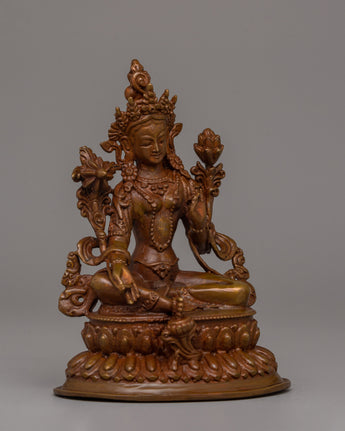 Green Tara Statue in Oxidized Copper - Spiritual Home Decor