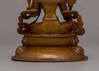 This elegant Green Tara Statue in Oxidized Copper is a stunning handcrafted piece of traditional craftsmanship. Green Tara is a revered figure in Tibetan Buddhism who represents kindness, honesty, and protection. This serene statue, which is 15 cm in height and 11 cm in width, would be a perfect addition to your spiritual altar or meditation area.