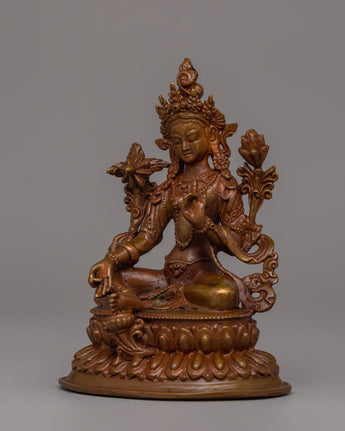 Green Tara Statue in Oxidized Copper | Spiritual Home Decor