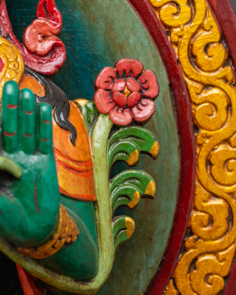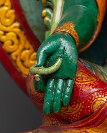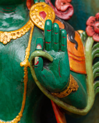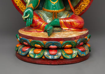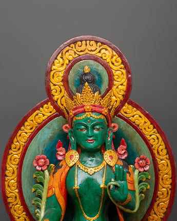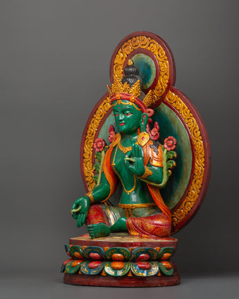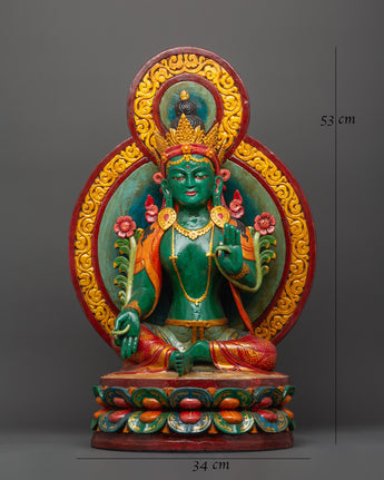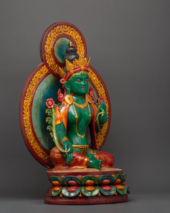Green Tara Wooden Statue - Symbol of Compassion & Protection