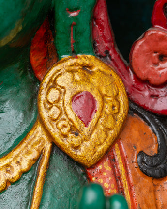 This hand-painted Green Tara statue, crafted by skilled artisans, is a Himalayan beauty. The elaborate details, extending from the elegant crown to the lotus pedestal, reflect the drive and perfection of traditional wood carving. Green Tara, also known as the "Mother of Liberation," is said to protect, teach, and guide her followers. Whether used for rituals, prayer, or decoration, this wooden sculpture is a powerful spiritual relic that can enhance any sacred place.