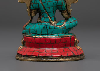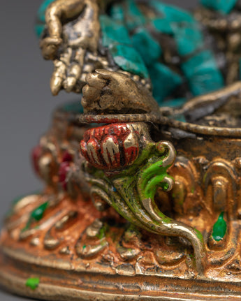 This Handcrafted Green Tara Statue, made from brass and accented with vibrant coral and turquoise inlays, invites divine compassion and swift protection into your sacred space. Celebrated in Tibetan Buddhism as the embodiment of enlightened action and female compassion, Green Tara is revered for her quick response to those in distress, offering guidance through challenges and fears. This statue is a meaningful addition to meditation areas or home decor, inspiring spiritual strength and serenity.