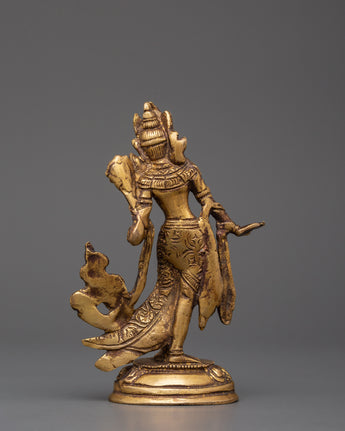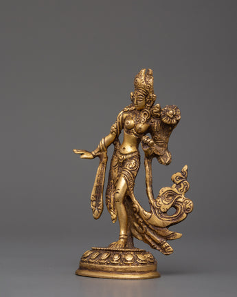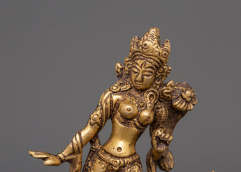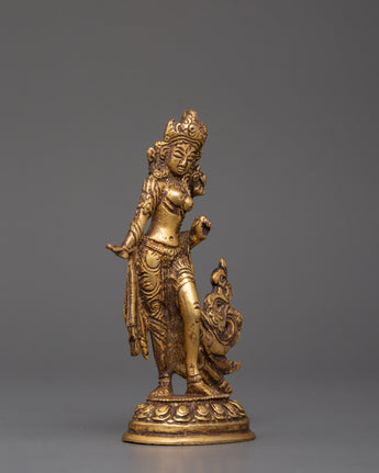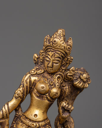 Handcrafted Standing Green Tara Statue | Tibetan Goddess Sculpture in Flowing Pose
