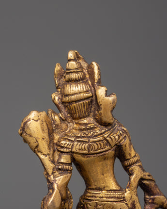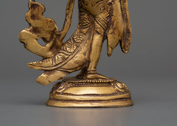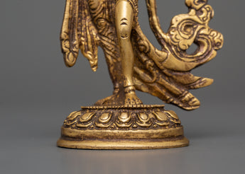 This 12.5 cm statue is expertly handcrafted in brass and features intricate detailing throughout, from the serene facial expression to the flowing ornaments and lotus pedestal. The Handcrafted Standing Green Tara Statue exudes both beauty and symbolic power. Green Tara, renowned for her ability to overcome fear and obstacles, offers protection, peace, and guidance to those who seek her assistance.