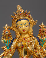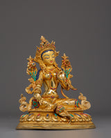 Handmade Shyama Tara Copper Sculpture | Tibetan Gold Plated Mother Tara Figurine