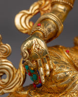 The Handmade Shyama Tara Sculpture showcases the skill and devotion of Tibetan artisans. Featuring Lapis Lazuli, Turquoise, and Coral stones, this statue is both a striking decorative element and a meaningful spiritual tool to invite Tara’s blessings of compassion and protection. Its gold plating and the materials used, make it a treasured piece of spiritual art that enhances the beauty and sacredness of any altar or meditation area.