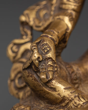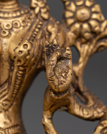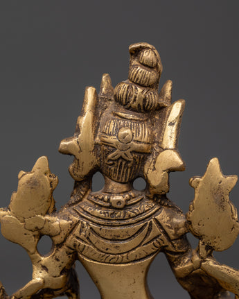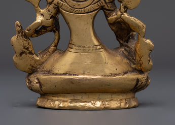 This handcrafted Spiritual Green Tara Statue is a stunning sculpture that represents protection, guidance, and liberty. This statue, made of brass, measures 14.5cm tall and 11cm broad and features intricate details of Green Tara, the adored Tibetan deity. Green Tara represents strength and compassion, and she is well-known for her quick assistance when needed. This statue is perfect for your meditation practice or as a meaningful addition to your home decor, offering a sense of calm and spiritual energy.