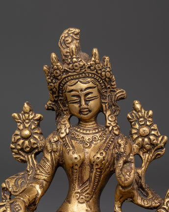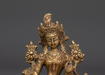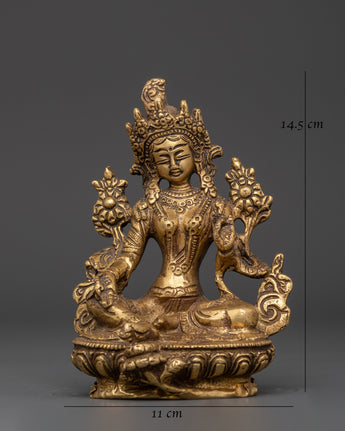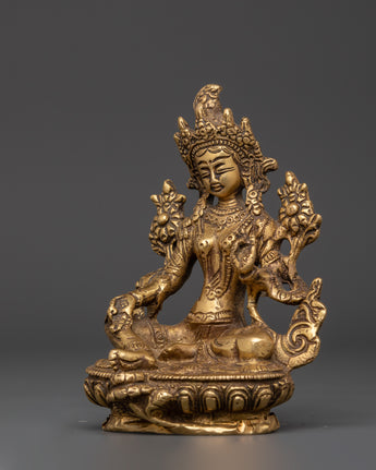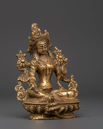 Handmade Spiritual Green Tara Statue | Brass Shyama Tara Figurine for Meditation