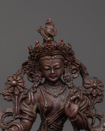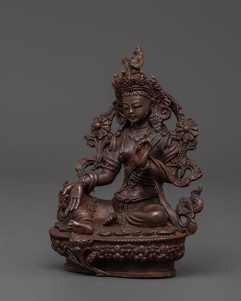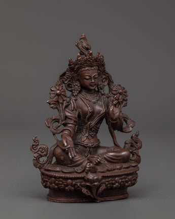 Oxidized Copper Green Tara Buddhist Deity Statue | Symbol of Compassion & Protection
