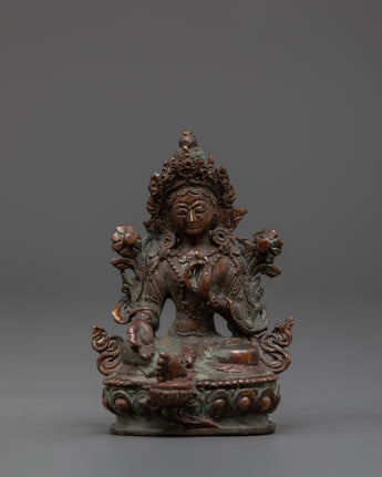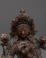 Buddhist Oxidized Green Tara Decor Statue | Nepali Buddhist Art