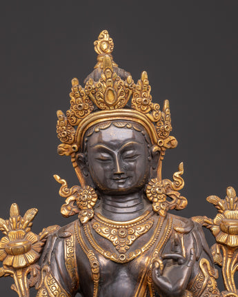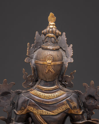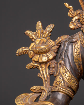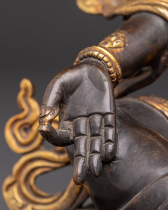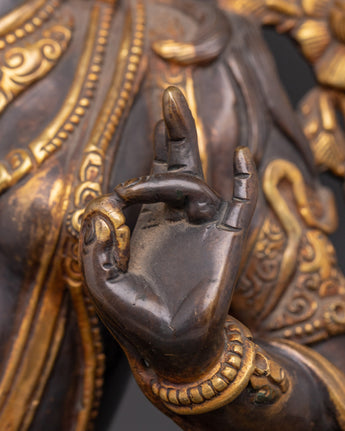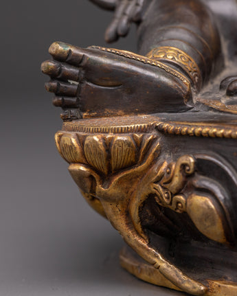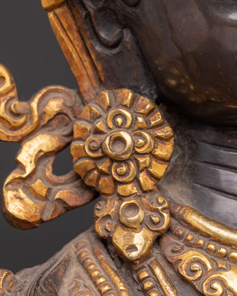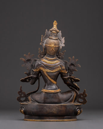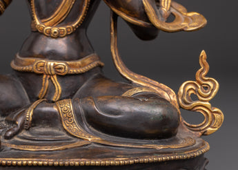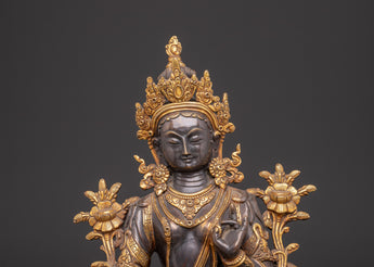 This Green Tara figure is a spiritual tool for attracting blessings into your life, improving your meditation practice, and serving as a magnificent ornamental element in your home, altar, or holy area. The oxidized body with gold plating gives the statue a rich, warm glow that emphasizes the tiny details, making it an excellent addition to any collection of Tibetan Buddhist art.