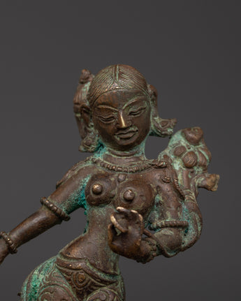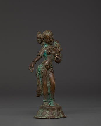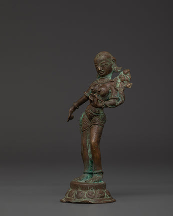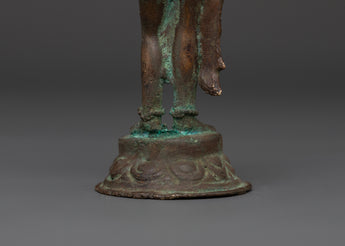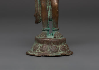 The fine detailing and aged bronze patina lend the statue a classic, sacred presence, making it ideal for home altars, meditation corners, or as a thoughtful gift of spirituality. Green Tara’s standing pose symbolizes her readiness to take action, balancing both wisdom and compassionate power. Whether used for daily practice, prayer, or decor, this handmade statue is a beautiful reminder of divine protection, emotional healing, and spiritual clarity.