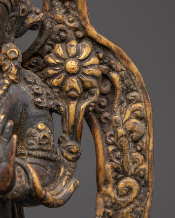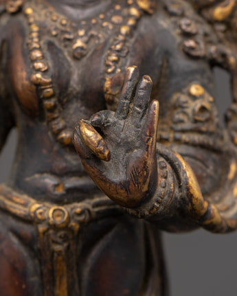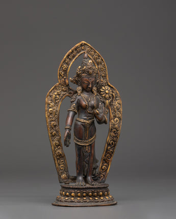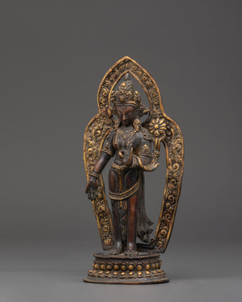 Carefully crafted by skilled artisans, the copper material gives the statue a radiant finish that enhances its spiritual significance. The intricate details and elegant design of Green Tara convey a sense of grace, offering both beauty and divine protection. This statue serves not only as a visual focal point but also as a powerful tool for healing, meditation, and attracting benevolent energy into your life.