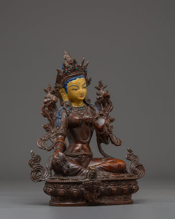 Handcrafted Tibetan Buddhist Deity Green Tara Statue | Symbol of Enlightened Action