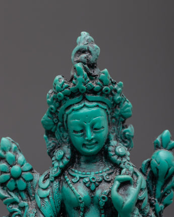 Tibetan Buddhist Goddess Green Tara | Handcrafted Turquoise Art with Spiritual Energy