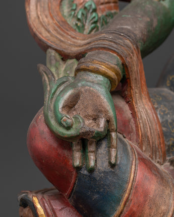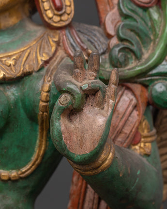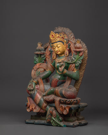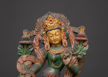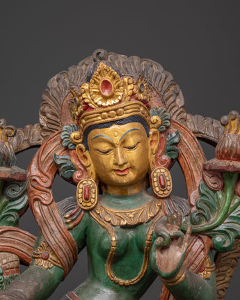 This hand-carved wooden figurine is perfect for individuals seeking a unique Tibetan Green Tara statue for meditation or spiritual growth. It combines beauty and religious symbolism. Enhance your space with this authentic Tibetan goddess sculpture, a symbol of compassion and protection that complements your spiritual journey and meditation practices.