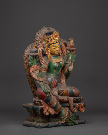 Hand-Carved Tibetan Green Tara Goddess Figurine for Meditation and Spiritual Decor