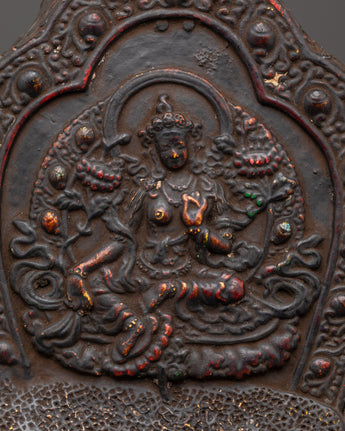 This hand-carved wooden Green Tara statue, created by talented artisans, is more than just an artwork; it represents divine protection and spiritual enlightenment. This sculpture, crafted from genuine wood, serves as both a lovely ornament and a tool for focusing energy during meditation. Green Tara's presence in your room may enhance your practice by bringing a sense of peace and clarity. Whether put on your meditation altar or as a focal point in your house, this unique figurine will instill peace and pleasant energy.