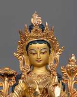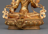 24K Gold Gilded Green Tara Sculpture for Altar | Compassionate Deity Art