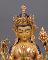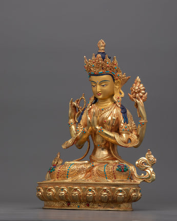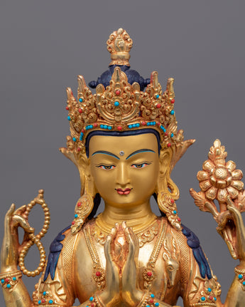 24K Gold Peaceful Figurine of Chenresig | Cultivation of Compassion