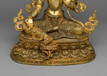 Green Tara is a Bodhisattva who is admired for her quick thinking, compassion, and capacity to spare suffering from sentient beings. She is frequently shown as a dazzling goddess with a serene expression, decked out in jewels and perched elegantly on a lotus throne. Tara's green hue represents her affiliation with proactive empathy, development, and freedom. Through rituals, prayers, and visions, devotees call upon her graces in order to seek her direction in navigating difficulties, fears, and roadblocks on the spiritual path. "Om Tare Tuttare Ture Soha," Green Tara's mantra, is said to call upon her kind energy and assistance during difficult times. She is the embodiment of the compassionate side of enlightenment, encouraging followers to develop courage, wisdom, and compassion in their daily lives.