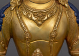 This Aparmita Buddhist Deity Figurine will bring the sacred blessings of good health and longevity into your holy area. Standing 13.4" (Height) x 10.4" (Base) and weighing 3.59 kg, this statue is made of copper, gilded with 24K gold, and finished with gold and acrylic paints. This figurine, handcrafted by professional Nepalese craftsmen, embodies Himalayan craftsmanship's creative tradition and spiritual dedication, making it a treasured centerpiece for altars, meditation rooms, or holy decor.