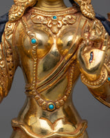 White Tara, known as the "Mother of Liberation," is venerated for her compassion and her swift intervention in the affairs of humans, particularly in health and longevity. Her practice is often sought to overcome physical, mental, or emotional suffering. This gilt sculpture of White Tara beautifully encapsulates her essence, providing not only a connection to her protective and healing energies but also serving as a constant reminder of the virtues of compassion and mindfulness in daily life.