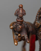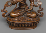 The statue's oxidized copper body and deep, antique-like finish add to its spiritual grandeur. The oxidization process highlights the complex gold and acrylic paintings, emphasizing Vajrasattva's delicate features and symbolic traits, such as the vajra (thunderbolt) he wields, representing spiritual power and unbreakable clarity.