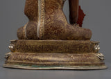Our Blue Buddha Sculpture is a one-of-a-kind combination of spiritual meaning, aesthetic expression, and excellent craftsmanship. This statue, meticulously carved from an oxidized copper body and embellished with silver plating, 24k gold, and colorful acrylic paintings, is a monument to Nepalese craftsmen's profound skills.