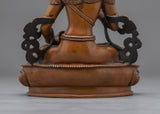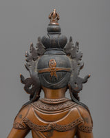 The Bodhi Vajrasattva Statue's profound energy can enhance your sacred area. This stunning work of art, which is 1.47 kg in weight and is 8.5"/21.5 cm tall, is handcrafted with an oxidized copper body, radiating spiritual purity and enlightenment. Vajrasattva is honored as a manifestation of primordial purity and wisdom. His transformational presence blesses your surrounds. Set off on a path of spiritual development and enlightenment by inviting the radiant energy of Bodhi Vajrasattva into your life.