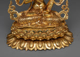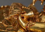 The statue, lavishly gilded in 24k gold, emanates a brilliant beauty, capturing Dorje Sempa's enlightened aura. The precise acrylic embellishments, which are harmoniously combined with its sturdy copper body, demonstrate artistic prowess and spiritual veneration. This artwork serves as a reminder of the path toward inner purity and enlightenment and is ideal for meditation areas, holy altars, or as a beacon of spiritual elegance in your living space.