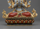 Accept the infinite kindness of the Bodhisattva Lokeshvara with our magnificent statue, painstakingly fashioned to enlighten your spiritual path. This statue, which is 9.45 inches tall and 7.68 inches wide, exudes kindness and love and provides comfort to everybody who comes to be in its presence. Encrusted with elaborate paintings in gold and acrylic, this statue embodies the spirit of Chenrezig, the personification of wise compassion. Every aspect of the Bodhisattva, from the calm countenance to the soft glance, conveys his or her unshakeable dedication to easing the suffering of all beings.