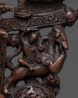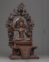 We have exquisitely hand-carved the statue of Bodhisattva Manjushri in traditional Buddhist Art. We have depicted a deity on top of a moon disc lotus throne, standing by carrying a wisdom sword in his right hand while a lotus in his left hand. We have also placed a wisdom book just above the lotus, which is mesmerizing. The design of the throne, sculpted in a Himalayan style, and crafted the body in an oxidized copper body, is magnificent and took more than a month for us to sculpt. You can use this art for multiple purposes like in your regular meditational or yoga activities, on different Buddhist occasions, and even for indoor home show pieces. This art of Himalayan will be a tremendous gift from Nepal to a suitable practitioner like you.
