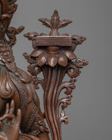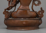 This sculpture's use of oxidized copper gives it a venerable, time-worn aspect that expresses Manjushri's ancient knowledge. The oxidation process gives the statue a rich, dark patina that enhances its depth and character, making it suitable for both classic and contemporary settings.