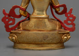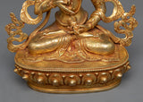 The Bodhisattva Vajrasattva Sculpture for Shrine is a magnificent symbol of the essence of purity and cleansing in Vajrayana Buddhism. Standing 9 inches tall and weighing 1.71 kg, this sculpture is precisely made from a copper body and covered with 24K gold plating, as well as detailed gold and acrylic paintwork. This artwork exudes the peaceful yet powerful energy of Vajrasattva, making it an excellent focal point for any shrine committed to personal development and spiritual cleansing.