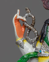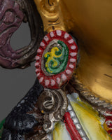 Termatree's handcrafted Buddha of Compassion Chenrezig welcomes you to the realm of holy compassion. This magnificent statue, towering 12.9" tall and resting on a 9.2" base, exemplifies Nepalese craftsmanship. Our expert artisans pour their hearts and souls into every detail, resulting in a piece that is as one-of-a-kind as it is spiritually significant.
