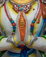 Chenrezig, the embodiment of the wish-fulfilling jewel, is recognized for his immeasurable compassion. He is said to observe all sentient beings' pain and to labor ceaselessly to alleviate it. The presence of this statue in your house or altar will serve as a continual reminder to practice the key principles that Chenrezig stands for love, empathy, and compassion.
