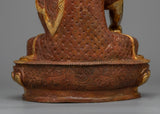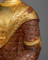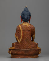 The sculpture is expertly crafted from an oxidized copper body and emanates a sense of timelessness and wisdom. It is lavishly gilded with 24K gold, creating a layer of brightness that complements the oxidized copper perfectly. The gold plating not only increases the statue's artistic appeal but also represents Buddha Shakyamuni's purity, knowledge, and enlightenment.